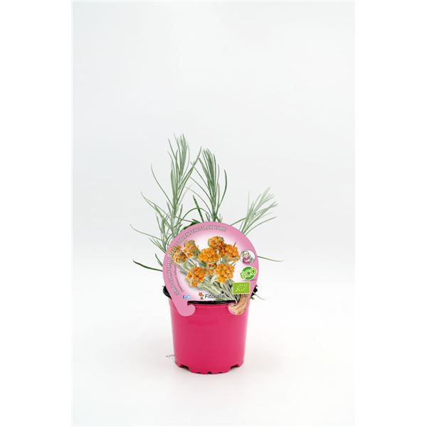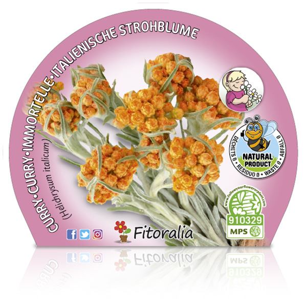 El Helichrysum italicum es una planta perenne cuyos tallos alcanzan entre 40 y 60 cm de altura, sus hojas están cubiertas de una aromática pelusa blanquecina que desprenden un olor particular que recuerda al curry. Sus hojas secas se muelen y se usan directamente para condimentar. El aceite de la planta de curry se puede utilizar para la aromaterapia para reducir la ansiedad y el estrés. Tiene ciertos usos medicinales, su aceite tiene propiedades antisépticas y antibacterianas.