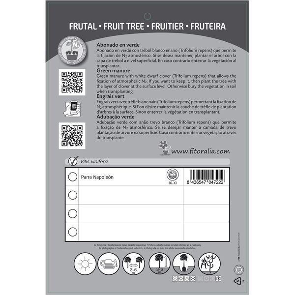 Árbol enraízado en maceta roja de 25 cm con etiqueta Fitoralia.