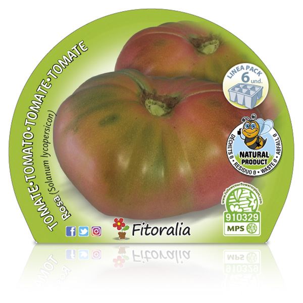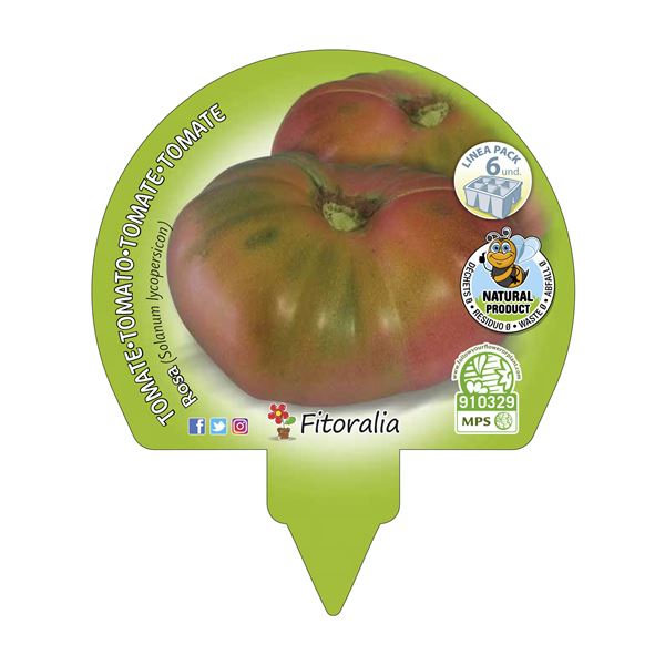 Variedad de mata alta que produce tomates de color rosa luminoso con matices verdes. Forma achatada y ligeramente asurcado. Tamaño grande. Sabor dulce y con un gusto excepcional. Tomate muy carnoso.