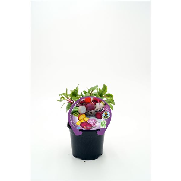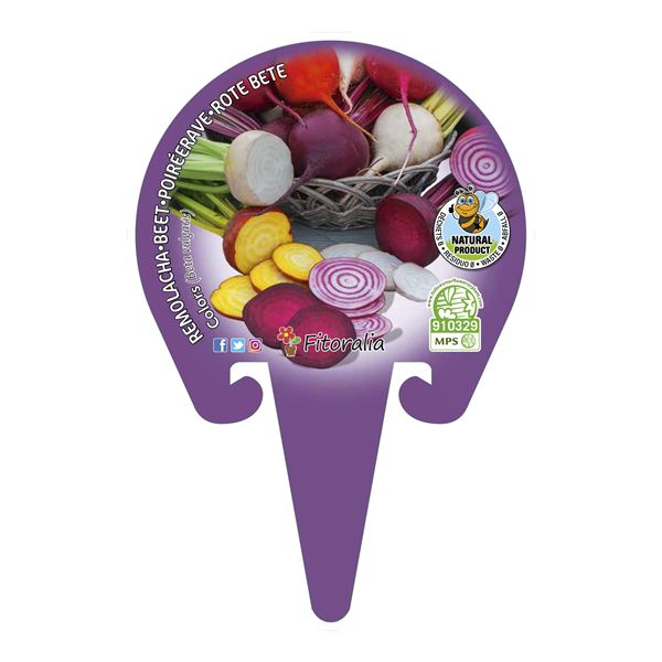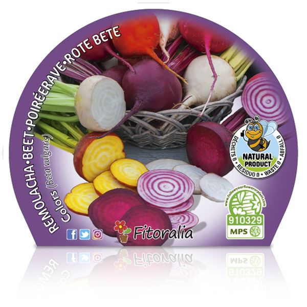 Colección de remolachas de colores formada por cuatro variedades: Detroit (Roja), Burpees Golden (Amarilla), Chioggia (Bicolor Roja y Blanca a círculos concéntricos) y Albina Vereduna (Blanca).