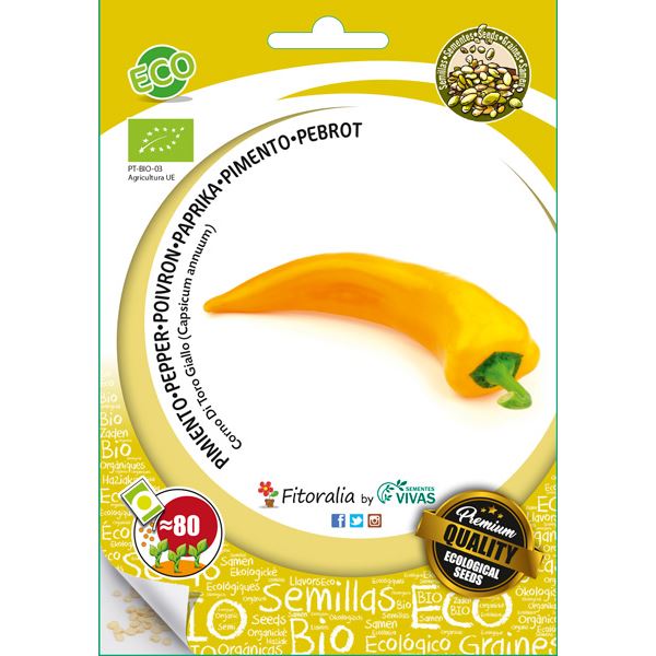 Pimiento tipo italiano de color amarillo intenso en maduración de sabor dulce y fragante. Frutos largos y cónicos de 18 a 20 cm de largo y hasta 150 g de peso de rápido crecimiento.
