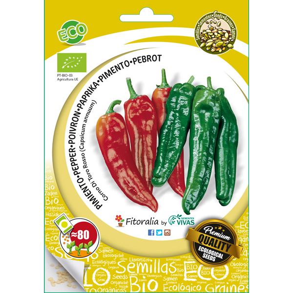 Pimiento tipo italiano de color rojo intenso en maduración de sabor dulce y fragante. Frutos largos y cónicos de 18 a 20 cm de largo y hasta 200 g de peso de rápido crecimiento.