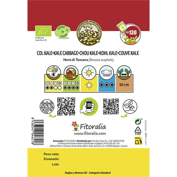 Col kale tambien conocida como kale piel de dragón o col palmera. Es una verdura tradicional que se consume, cruda o cocida, es rica en vitamina C y calcioy baja en calorías. Fácil de cultivar, una planta muy resistente al frío, las hojas aún son de mejor sabor, más tiernas cuando han sufrido la acción de las heladas.